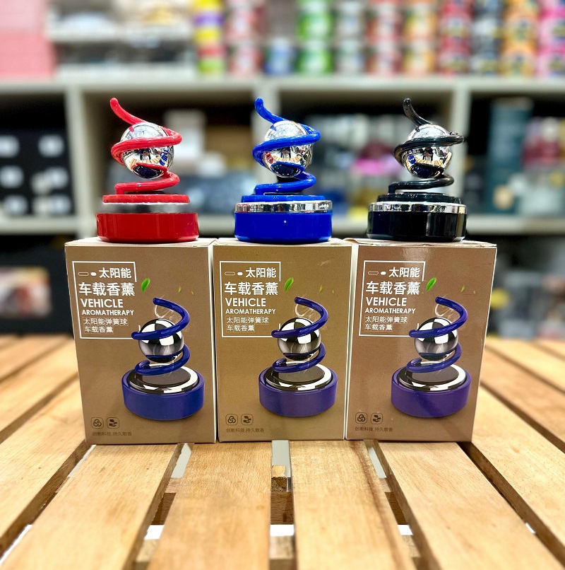 Solar-powered car air diffuser with unique interstellar rotating design, no batteries or charging required.